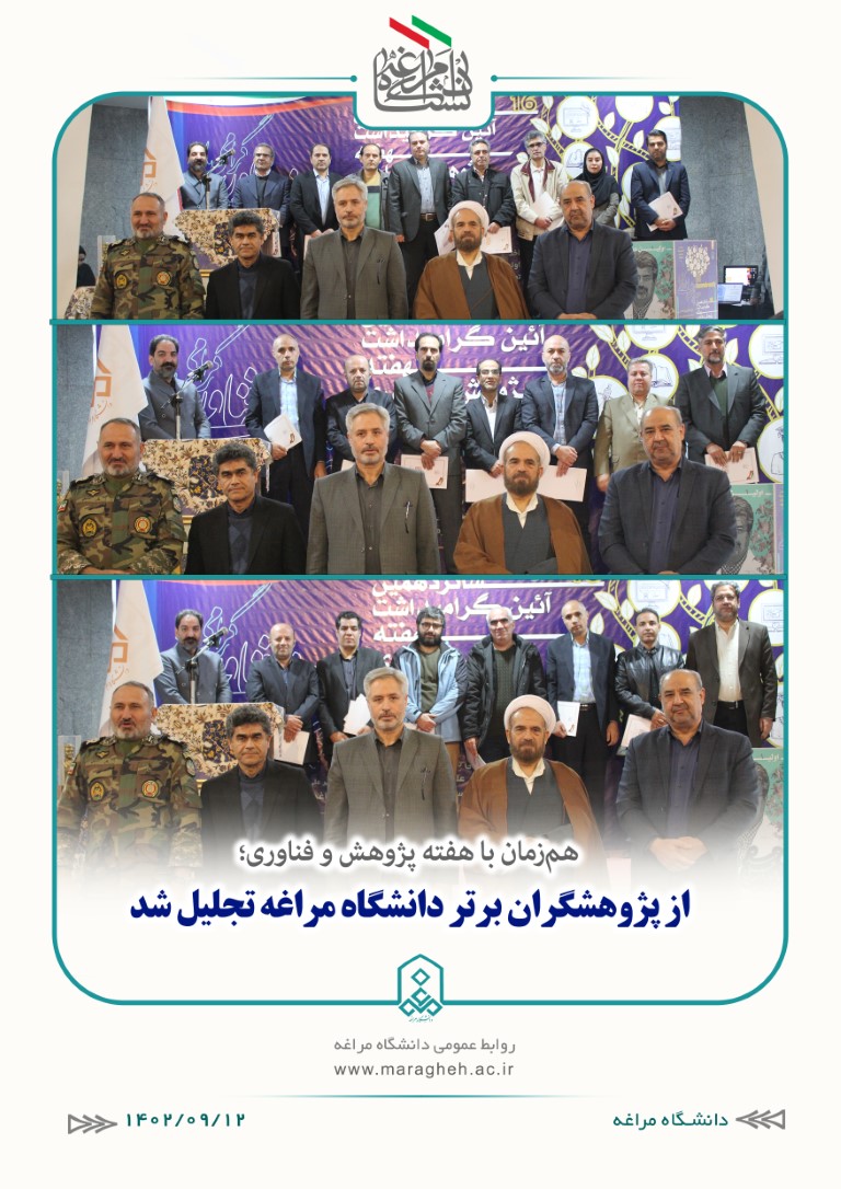 در بخش دیگری از این آئین ازپژوهشگران برتر دانشگاه مراغه تجلیل شد: